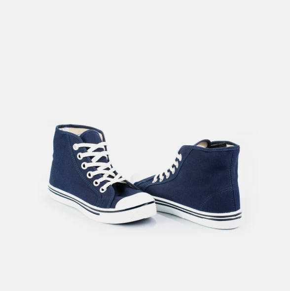 Tenis institucional en lona azul oscuro, diseño alto que ofrece resistencia, comodidad y practicidad para el uso diario.